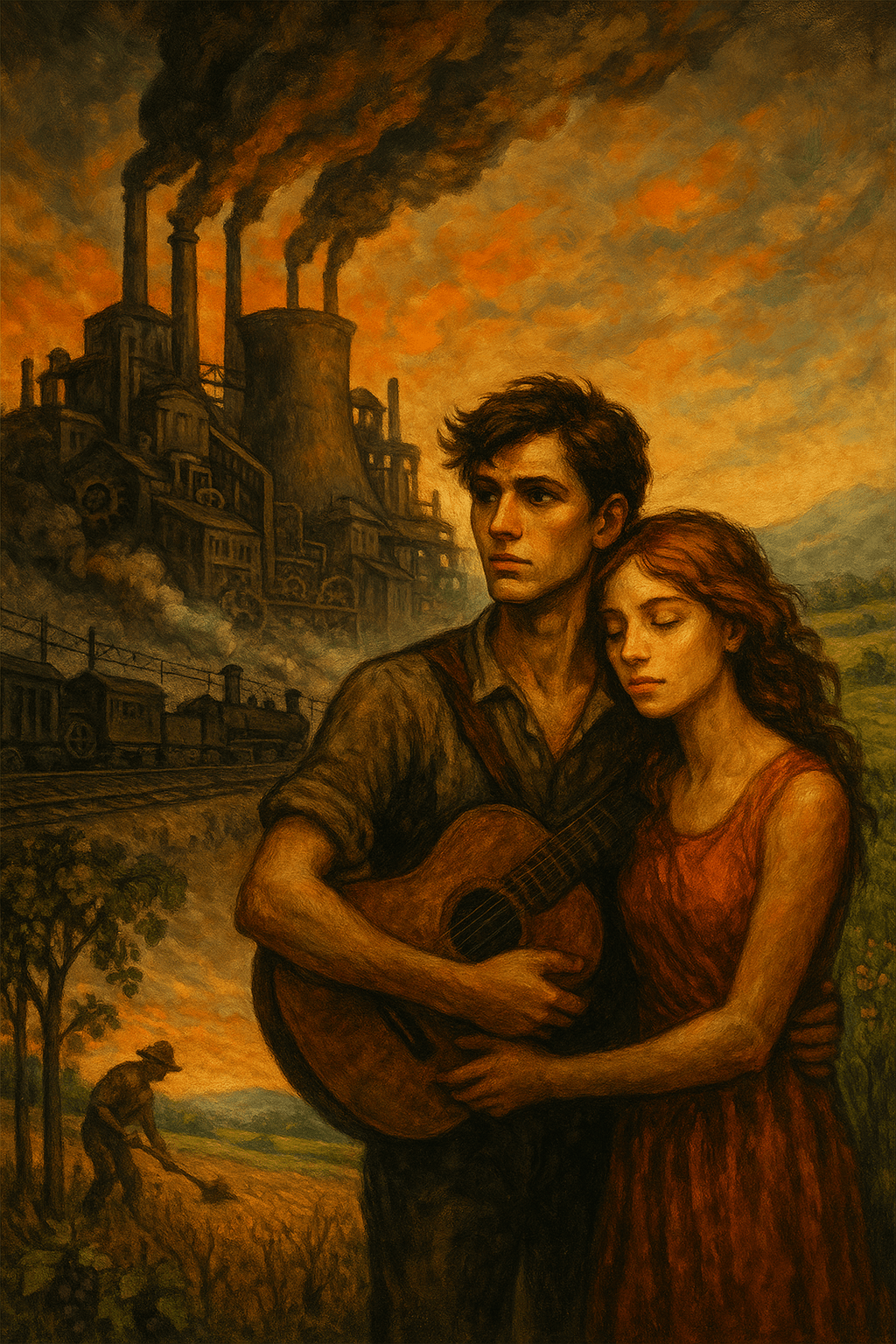 Hadestown is a factory-town dystopia—an echo of industrialization’s dehumanizing force. It runs on discipline, not spontaneity; on walls and rules rather than fields and risk. Eurydice, driven by scarcity, trades her freedom for security—a trade not unlike those made during the agrarian-to-industrial shift: surrender to the “Company Town,” the factory, the schedule.